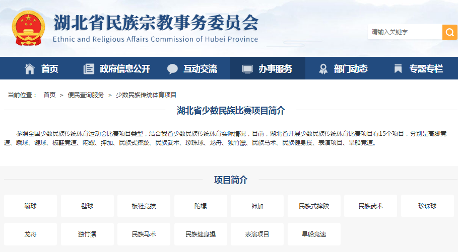 重点领域必威手机登录界面情况。我委围绕业务职能,策划设计服务频道,优化办事服务专栏。通过整合宗教活动场所、少数民族体育传统体育项目、湖北省民贸民品企业等服务查询资源,为群众提供沉浸式、情景式一件事服务专题,覆盖在线办事、便民查询等服务内容。