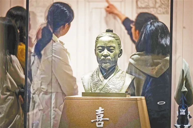 ▲ 湖北省博物馆展出的云梦睡虎地秦简主人“喜”的3D复原头像。新华社记者 肖艺九摄