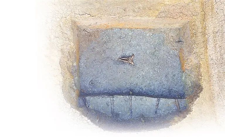 郑家湖M257墓是整个墓地级别最高的一座墓,从其随葬日用陶器组合、屈肢葬、殉牲习俗来看,墓主应是西北秦人。据考古分析,墓主出生在西北旱作区,但在少年时期来到江汉平原直至去世。墓主死亡年龄在45岁左右,其棺内人骨架两侧摆放有三把铜剑,剑锋伤痕累累,表明墓主应是一名征战多年的武士或将军。考古研究显示,墓主下葬年代在秦代,如此算来,他至少为秦统一六国征战了近20年。