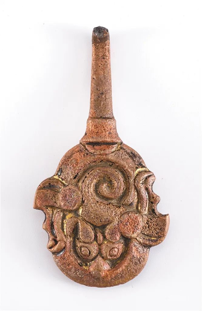 云梦秦墓还出土了不少北方游牧民族风格的饰品,其中以带钩(古人用来扣接束腰革带的挂钩)最为常见。动物造型的带钩流行于东周时期的北方戎狄之间,战国时期赵国受其影响也比较流行。郑家湖M277墓出土的铜带钩,后蹄翻转的造型细节具有明显的北方特征,但兽头与中原流行的螭虎纹的头部有些类似,整体呈现出战国末到汉初的时代特征。这种带钩反映了秦人与北方游牧民族的交流融合。
